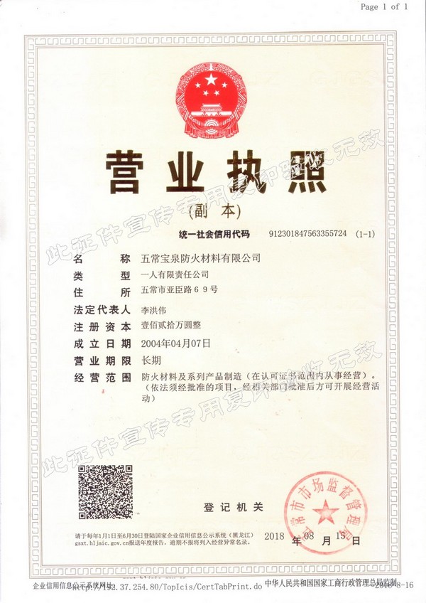 企業簡介 五常寶泉防火材料有限公司(黑龍江省寶泉消防設備有限公司)是主要制造、經營、銷售防火阻燃材料系列產品。其中以自粘性阻燃包帶(ZFBD)、阻火包(PFB)、有機防火堵料(SFD)、室內超薄型鋼結構防火涂料(NCB(BCF)-1)為主要產品。寶泉牌防火材料系列產品是普通防火材料的更新換代產品,防火性能優(yōu)異,具有普通防火材料沒有的諸多優(yōu)點:施工方便、經久耐用、耐火極限高、熱傳導率低、耐腐蝕、抗老化、無毒無害、環(huán)保、可以連續(xù)施工等特點。產品廣泛應用于電力企業(各型電廠、輸變電公司、電建公司、電力公司)、石油化工企業、冶金業、通訊業、地鐵、隧道、...